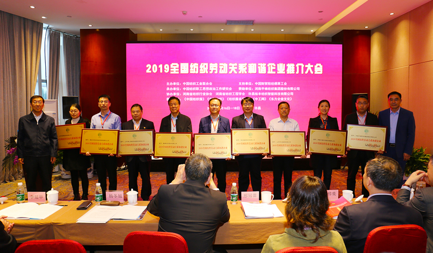 公司榮膺“2019全國紡織勞動關系和諧企業”榮譽稱號